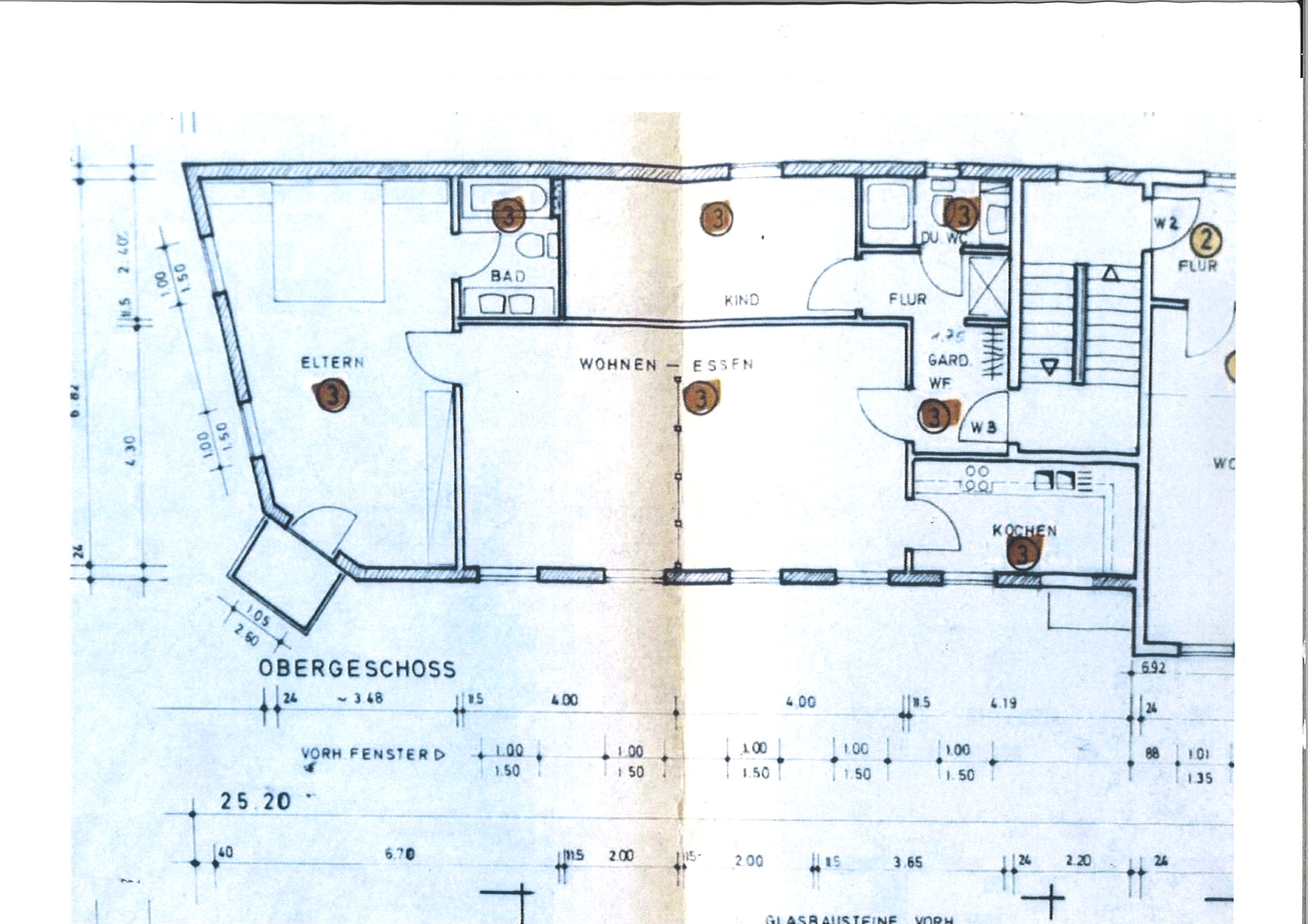 Wohn-/Esszimmer, Schlafzimmer, kleines Zimmer od. Abstellraum, Küche, Bad mit WC, Becken und Wanne, Gäste-WC als Duschbad, Vorratskeller
